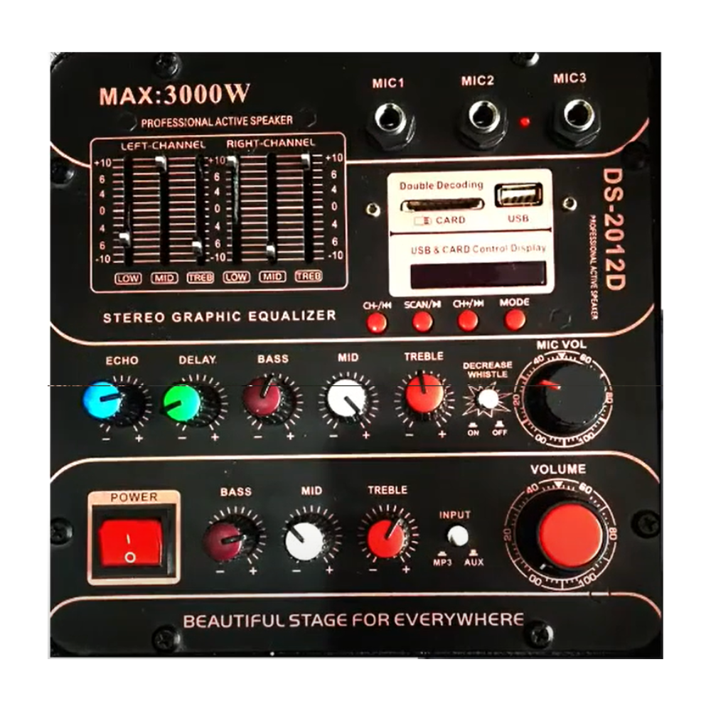 The AVVOX Active PA Speaker Model 2012 delivers 360W RMS powerful sound through a 12-inch speaker, perfect for parties, events, and outdoor gatherings. Comes with 2 free UHF wireless microphones and multiple input options for a complete audio setup.